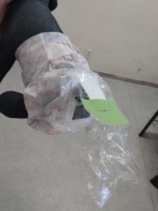 オムツにうんちキャッチ用袋がついたものです。ウンチが袋の中にとどまるので、踏み荒らして汚すことを防げます。